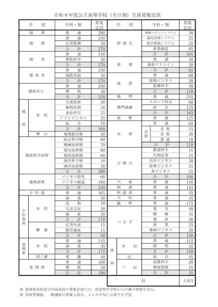(出典:令和8年度公立高等学校入学者選抜募集定員について )